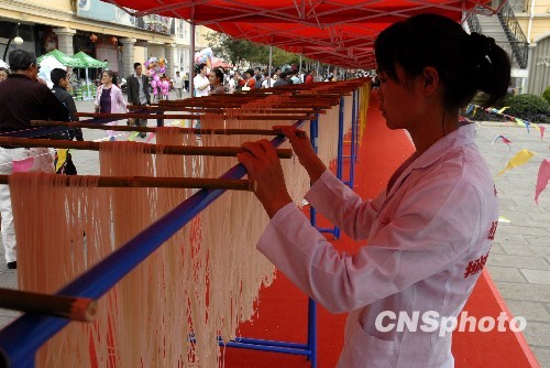 "过桥米线之乡"制超2公里的中国最长米线(2)