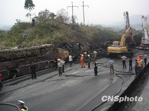图:广西南丹发生4车相撞事故 3车烧毁(3)