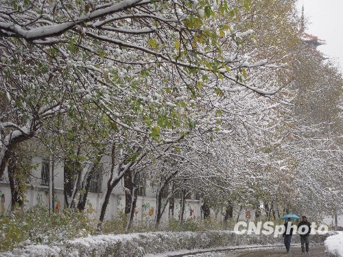 据悉,当地很少出现在深秋时节降雪的天气。 中新社发 王云龙 摄