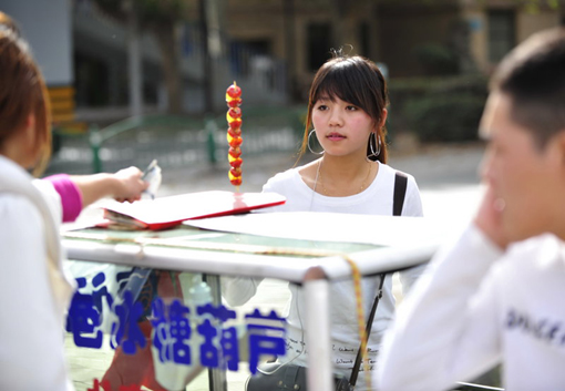 这个叫康晓菡的女孩迅速走红西安交大校园,被男生们冠名为“糖葫芦西施”。邓小卫 摄