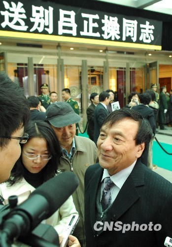 10月20日,杨尚昆之子杨绍明(右)在北京八宝山革命公墓送别新中国最后一位开国上将吕正操。当日上午,新中国开国上将吕正操将军遗体告别仪式在北京八宝山革命公墓举行。中新社发 侯宇 摄