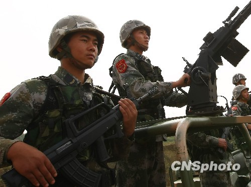 参加演习部队10月20日严阵以待。这次演习主要进行陆空火力协同山地进攻战斗演练。中新社发 宋吉河 摄