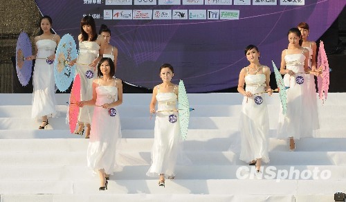 10月20日,2010杭州中国丝绸城杯国际旅游小姐中国华东赛区总决赛丝绸丽人赛在杭州西湖文化广场举行,50位佳丽参赛。中新社发 引炜 摄