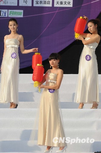 10月20日,2010杭州中国丝绸城杯国际旅游小姐中国华东赛区总决赛丝绸丽人赛在杭州西湖文化广场举行,50位佳丽参赛。中新社发 引炜 摄