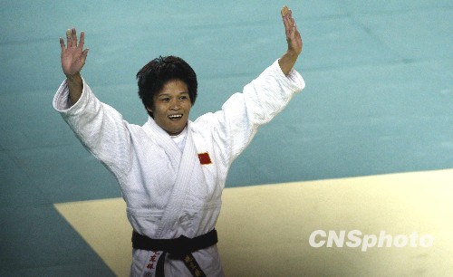 图为冼东妹庆祝胜利。中新社发 张宇 摄