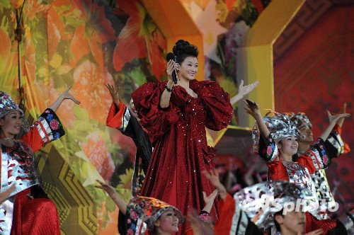 宋祖英与民歌节结下不解缘,在数度献艺民歌节后,今年再次压轴登台,奉献了一曲《唱起来》。中新社发 蒋雪林 摄