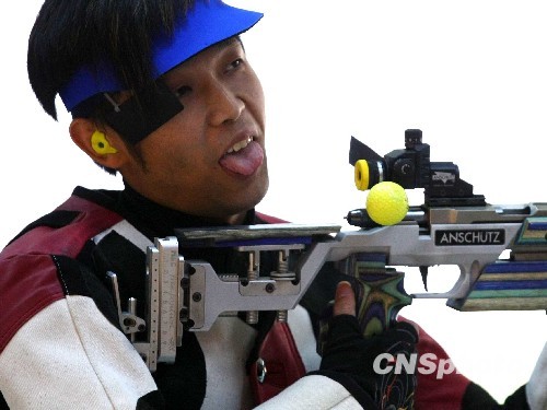 10月21日,全运会男子50米步枪三姿赛,奥运会冠军朱启南在领先的情况下,最后一枪仅打出了八环,痛失金牌。黑龙江选手侯凯最后一枪力压朱启南获得冠军。中新社发 富田 摄