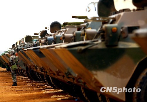 图为大战之前机械化步兵旅战车列阵。中新社发 宋吉河 摄