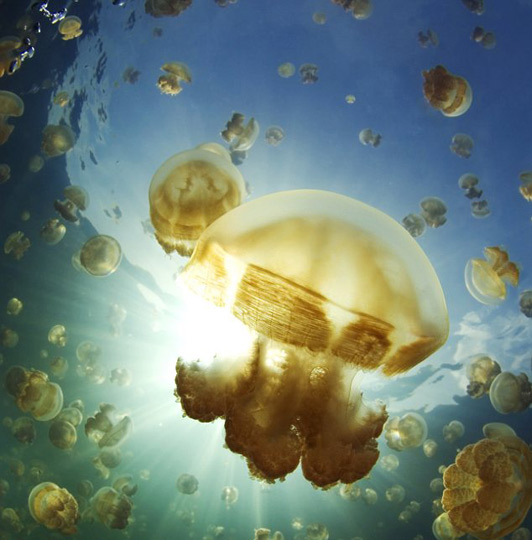 美图:美国摄影师与数百万水母湖中嬉戏(2)