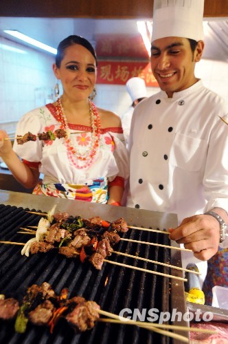 图为一位来自墨西哥的厨师正在展示“加勒比海鲜美食”烹饪过程。中新社发 罗澜 摄