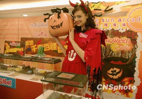 十月二十二日,香港一商家举办《新地千奇百怪昆虫展》,展示多款世界各地稀有昆虫动物,将万圣节欢乐提前带给市民。图为模特参与活动助兴。中新社发 张勤 摄