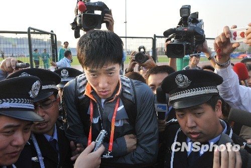 组图:刘翔亮相全运会训练场 笑对媒体(4)