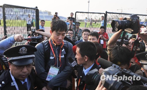 组图:刘翔亮相全运会训练场 笑对媒体(6)