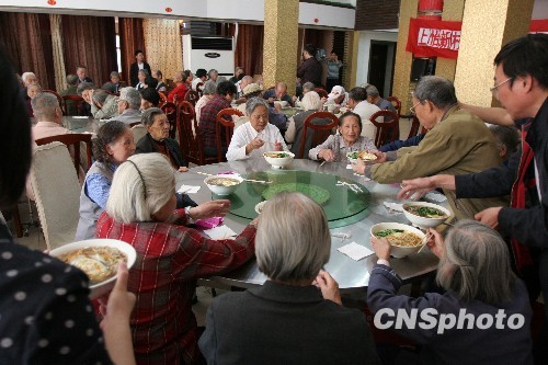 当日,上怡新村社区举办“独居老人相聚日”和“耄耋老人吃长寿面”等项活动,为社区70岁以上老人喜迎即将到来的“敬老节”送上社区的关怀。中新社发 孙忠南 摄