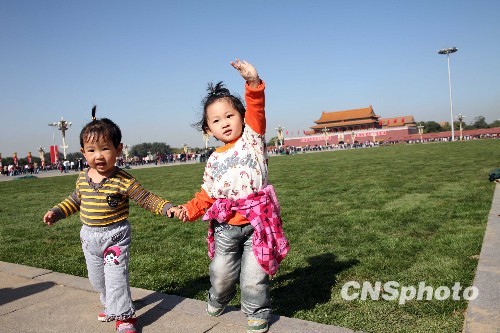 10月22日,经过园林工人一天的努力,天安门广场东侧的草坪已重新铺设,两块草坪面积合起来是9600平方米,象征祖国的960万平方公里的土地。据了解,由于国庆期间广场两侧都摆放了彩车,彩车撤离后要按照惯例对原草坪进行重新铺设。此次工程分维修喷灌系统、整地、平地、铺设草坪四个程序。预计整个工程10月底竣工。中新社发 陈晓根 摄