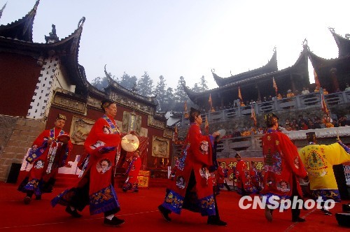 10月23日上午,具有千年历史的福建古田大桥镇临水宫祖庙隆重举行道教科仪表演,欢送顺天圣母陈靖姑金身起驾赴台湾巡安。陈靖姑是福建最有影响力的两大女神之一,被海内外誉为“救产、护胎、佑民”的“妇女儿童保护神”,在台湾有数十万信众。中新社发 王东明 摄