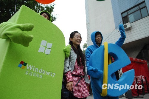 图为一名女性参加微软公司最新操作系统“Windows 7”的中国地区发布活动,乐在其中。中新社发 侯宇 摄