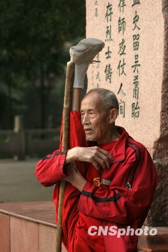 2009年10月23日,91岁的肖清连老人在武汉市施洋烈士公园内表演“功夫”,吸引了围观者。