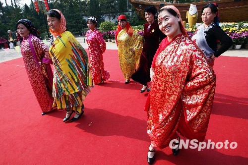 2009年10月24日,山东潍坊金宝乐园内,一场“老年模特秀”吸引了众人眼球。中新社发 张驰 摄