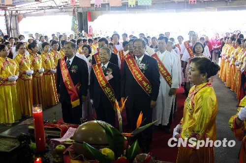 顺天圣母陈靖姑金身即日起开始展开为期13天的首次台湾全岛巡游活动,了却两岸信众盼望多年的夙愿。中新社发 黄少华 摄