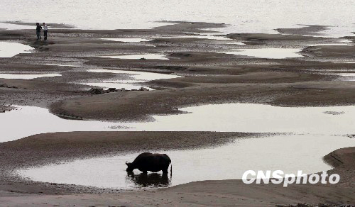 10月24日,武汉天兴洲附近的江面退缩严重,江底的淤泥已经显露出来,有些江段已露出江底的防洪水泥板。今年10月以来,长江水位大幅退落,特别是汉口段水位,以平均每天0.1米的幅度退落,当日更是跌破3.6米,达到3.59米。中新社发 摄记 摄