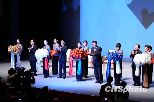 10月26日上午,第23届“世界设计大会”在北京国家大剧院开幕,北京市市长郭金龙(右四)、中国教育部长周济(右二)、著名设计师张同炼(前国际设计联盟共同主席、国际平面设计协会会长,左二)为大会开幕剪彩。会议期间,来自世界各国家和地区的学者专家、设计师等将就新时期的设计产业发展进行广泛讨论,并将举行大量设计展览。中新社发 侯宇 摄