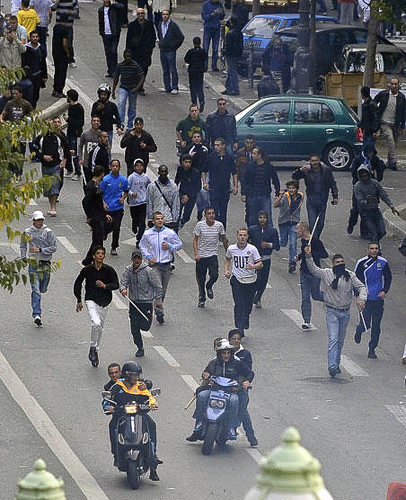 图:法国球场甲流侵袭引发球迷混战 (2)