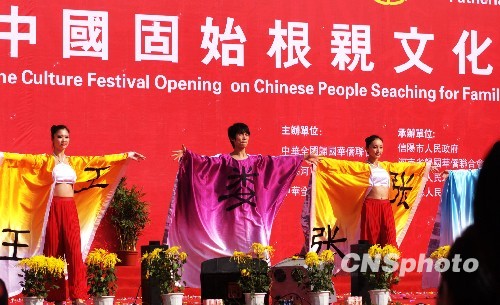 十月二十六日,服装模特身穿姓氏服装舞台上走秀。当日,由中国侨联、河南省政协和全国台联联合主办的中国固始根亲文化节,在“唐人故里·闽台祖地”——河南省固始县拉开帷幕。中新社发 向明超 摄
