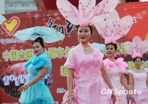 10月26日,合肥市瑶海区举办大型重阳节文艺汇演活动,身着节日盛装的老人们表演了时装秀、武术表演、黄梅彩唱、花鼓灯等众多精彩的文艺节目,庆祝重阳节的到来。 中新社发 解琛 摄