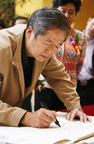 十月二十七日,云南陆军讲武堂建校百年庆典系列活动《百年军校 将帅摇篮》主题展览开展仪式在昆明市陆军讲武堂举行。图为蔡锷嫡孙蔡协为庆典题词。中新社发 刘冉阳 摄