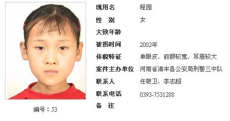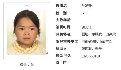 公安部公布60名未查清身源被拐儿童信息(27)