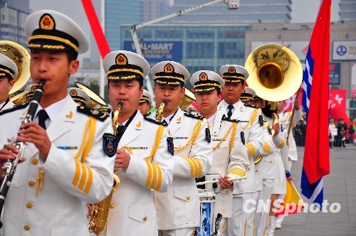图为中国人民解放军海军军乐团亮相南昌八一广场。中新社发 马裕淇 摄