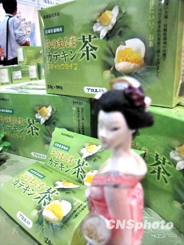 第三届日本食品展展会中展出的花茶。 中新社发 井韦 摄