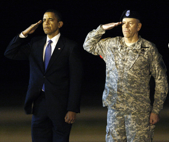 美国总统奥巴马当地时间28日深夜乘专机抵达多佛空军基地,向刚刚运至这里的阿富汗美军阵亡士兵遗体致敬。