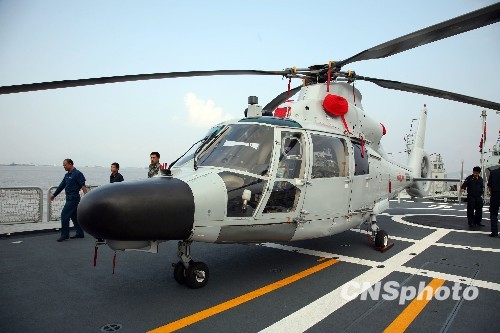 舰载直升机随编队远赴亚丁湾执行护航任务。 中新社发 孙自法 摄
