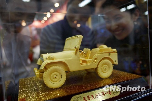 10月30日,北京国际钱币博览会开幕,电镀砂铜工艺品“毛泽东阅兵第一车”模型吸引参观者目光。本届博览会以“方泉世界,辉煌历程”为主题,共有18个国家和地区前来参展。中新社发 郑雄增 摄