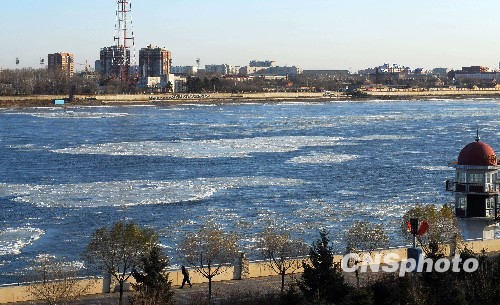 10月30日,中俄界河黑龙江黑河段出现大量大块流冰。受冷空气影响,连日来黑龙江省黑河市气温降到零下12度,致使中俄界河黑龙江黑河段大块流冰出现。中新社发 邱齐龙 摄