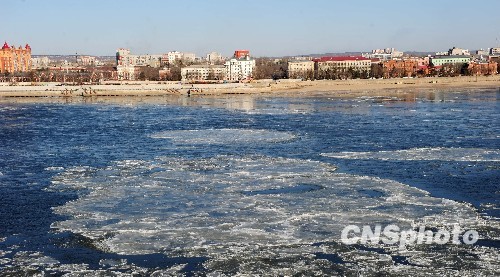10月30日,中俄界河黑龙江黑河段出现大量大块流冰。受冷空气影响,连日来黑龙江省黑河市气温降到零下12度,致使中俄界河黑龙江黑河段大块流冰出现。中新社发 邱齐龙 摄