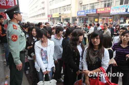 10月30日,在南京童家巷江苏省征兵办设立的报名点,约2000名南京高校女生积极报名参军,其火热程度直逼公务员考试。中新社发 刘小楚 摄