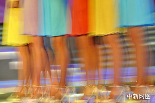 图为彩排现场众佳丽熟悉舞台。中新网记者 金硕 摄