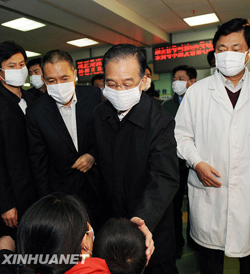 10月31日,中共中央政治局常委、国务院总理温家宝来到北京儿童医院,看望各地来此就诊的甲流患者,并向奋战在防控一线的医务工作者表示亲切慰问。