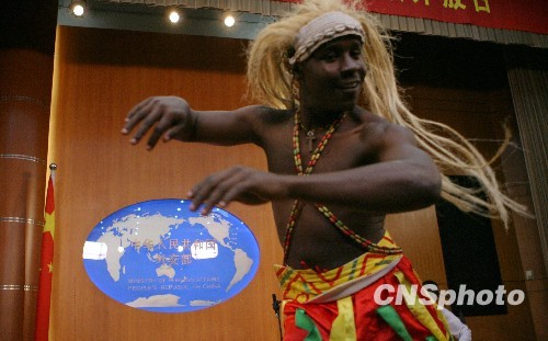 组图:外交部新闻发布厅上演非洲歌舞(2)
