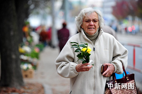 10月31日,川流不息的扫墓民众使布拉格市内一处平日寂静冷清的公墓变得门庭若市,门口摆出许多临时卖花摊,当局还派出警察维持秩序。