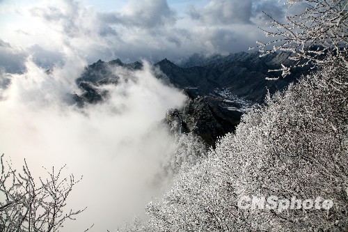 11月1日,一场瑞雪降落京城,把古老的箭扣长城装扮得如诗如画。中新社发 卜向东 摄