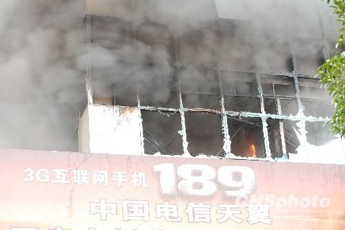 图:桂林电信大楼突发大火 消防官兵紧急救援(2)