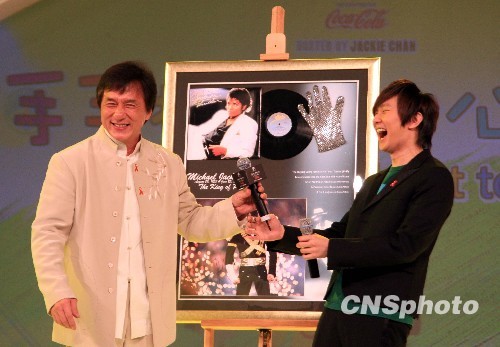 携手成龙献爱心 称有意"跨"上银幕演电影