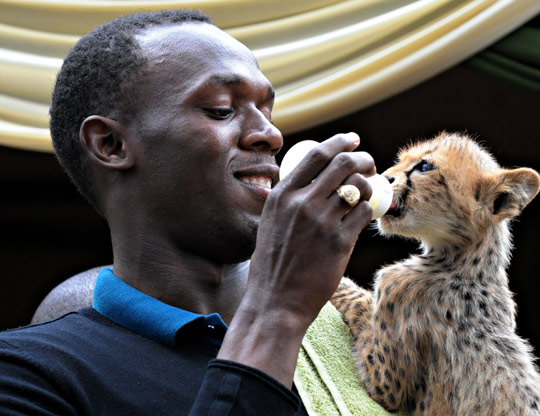 11月2日,牙买加“飞人”博尔特在肯尼亚野生动物中心收养了一只3个月大的小猎豹,并给其取名为“闪电博尔特”。