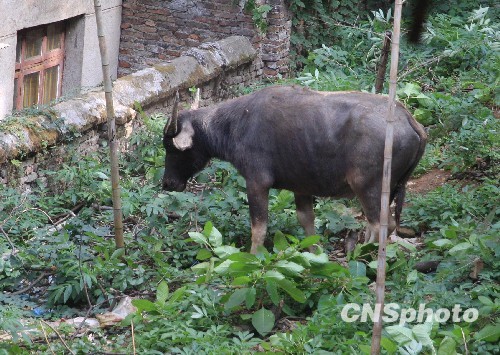 发疯水牛被特警用冲锋枪射击后奔跑。中新社发 郭国权 摄