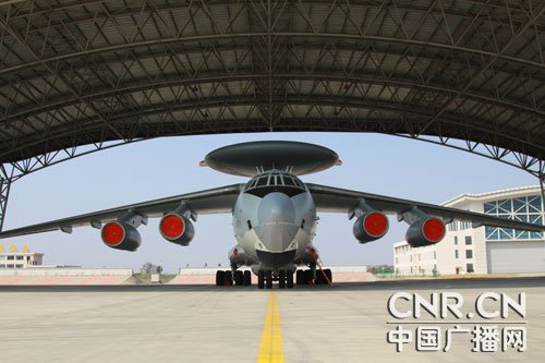空警-2000是中国自行研制并正式列装的第一种大型空中早期预警控制平台,搭载远程相控阵雷达,采用伊尔76MD大型运输机作为载机,外观和同样采用伊尔76作为载机的俄制A-50预警机十分相似。记者在现场近距离感受了这个“大家伙”,空警-2000共有20个轮胎,是国内战机中轮胎数最多的,一般民航飞机轮胎数为10个。飞机机背上的相控阵雷达被亲切地称为“大蘑菇”,直径有10米,是世界上功率最大的机载相控阵雷达。