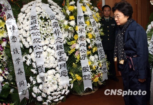 11月4日,中国国务院侨办主任李海峰前往位于北京航天大院的钱学森家中,吊唁这位刚刚逝世的中国航天事业的开创者和奠基人。中新社发 苏丹 摄
